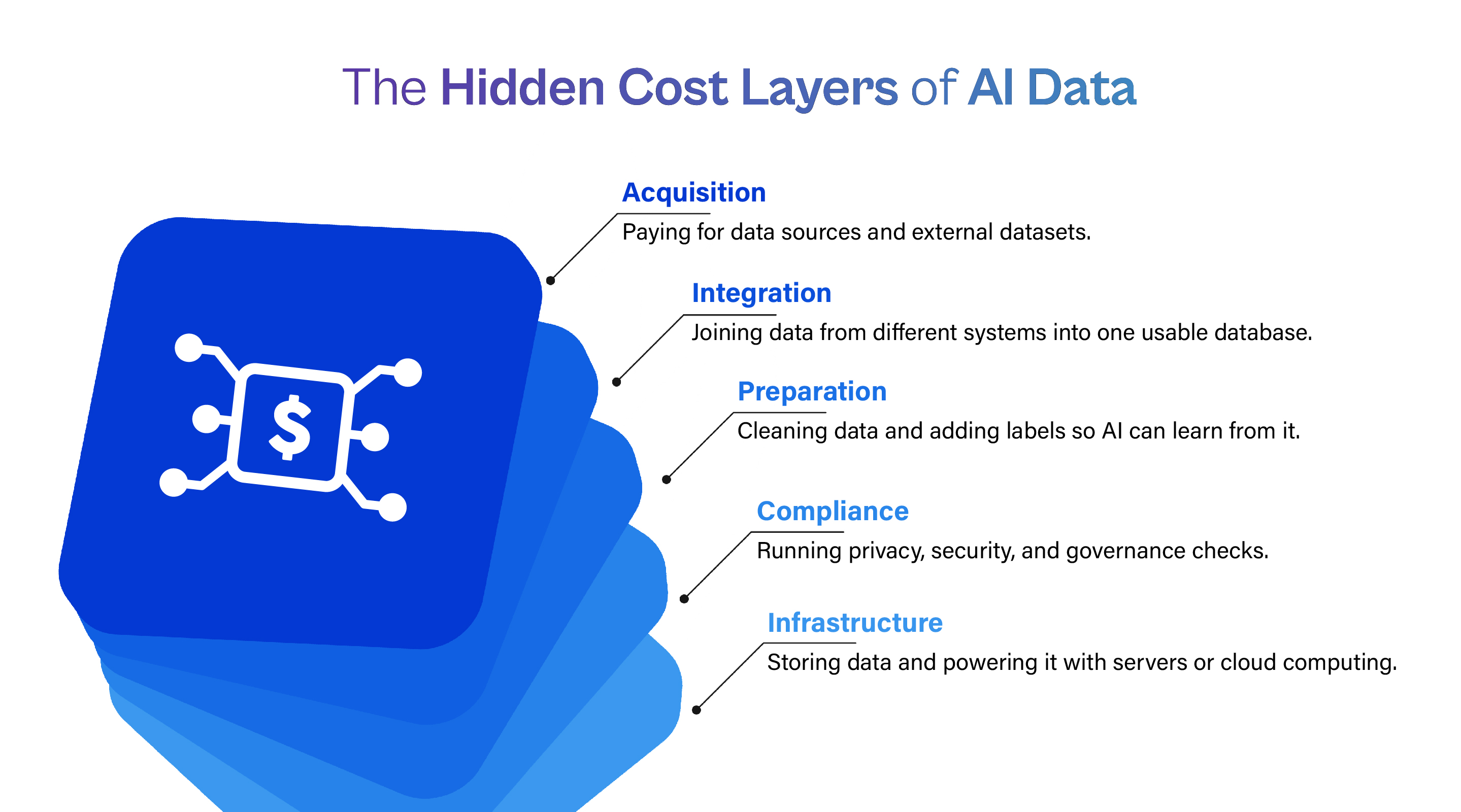 Before we talk about savings, it helps to unpack where the money actually goes in a “data-hungry” AI initiative.